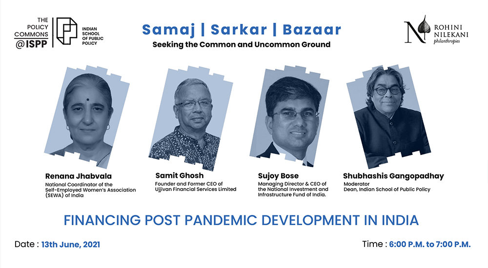 The upcoming session of the ISPP Policy Commons, “Financing Post Pandemic Development in India” will bring together eminent speakers from the civil society, state, and market to discuss the road to recovery, and India’s growth and development in the coming months.