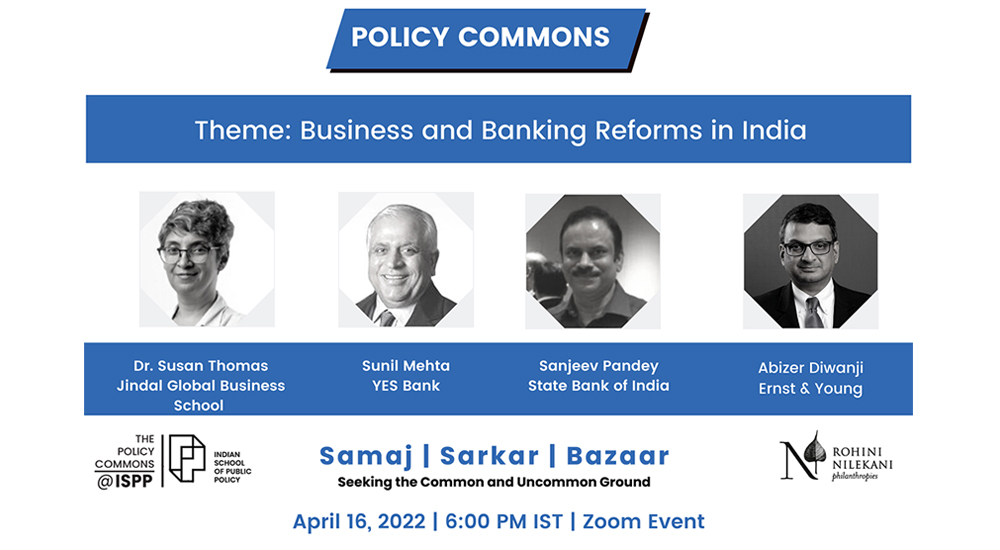 Banking professionals tuned in as noted panellists came together to discuss Indian business and banking reforms in the Policy Commons series. The Indian School of Public Policy in collaboration with the Rohini Nilekani Philanthropies brought together representatives from samaj, sarkar, and bazaar.