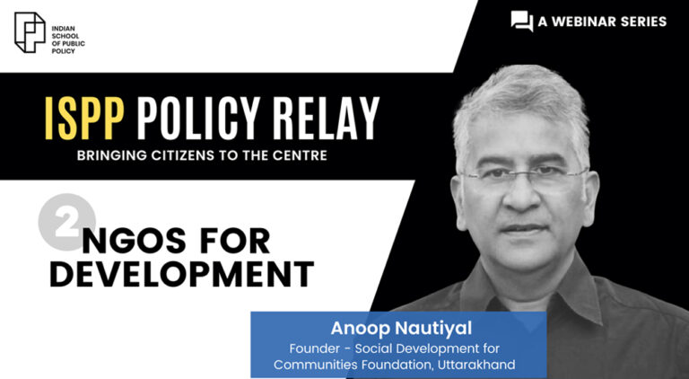 Indian School of Public Policy, the first-of-its-kind knowledge institution, organised a webinar on “NGOs for Development” with the founder of Social Development for Communities (SDC) Foundation, Anoop Nautiyal on October 19, 2022.