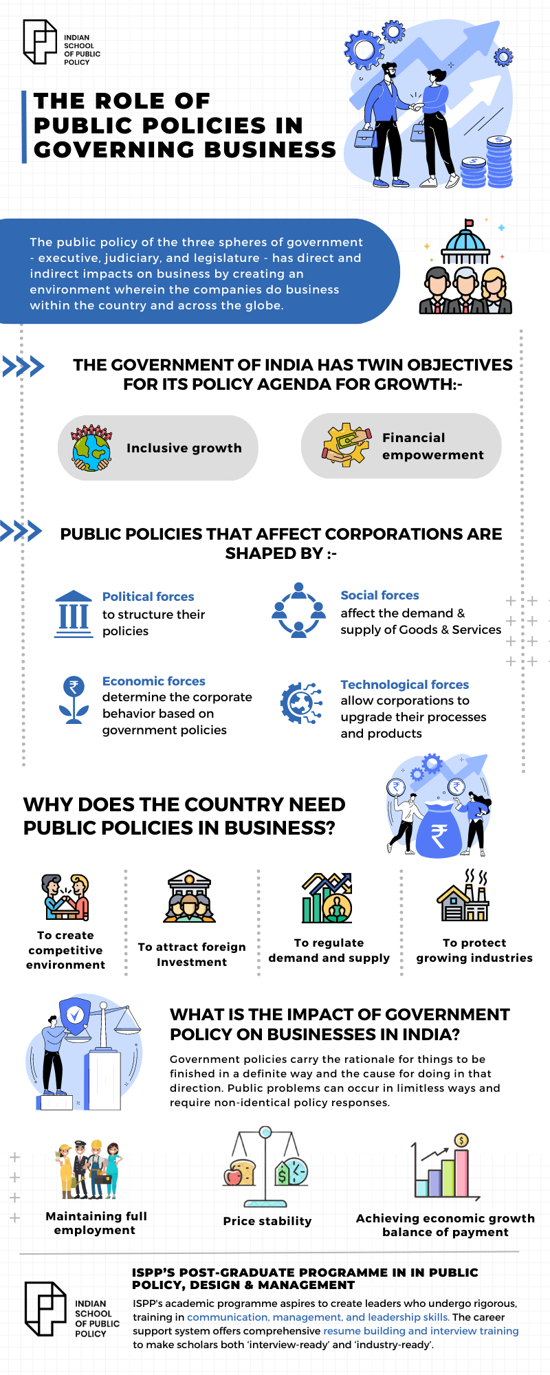 The public policy of the three spheres of government – executive, judiciary, and legislature – has direct and indirect impacts on business by creating an environment wherein the companies do business within the country and across the globe.
